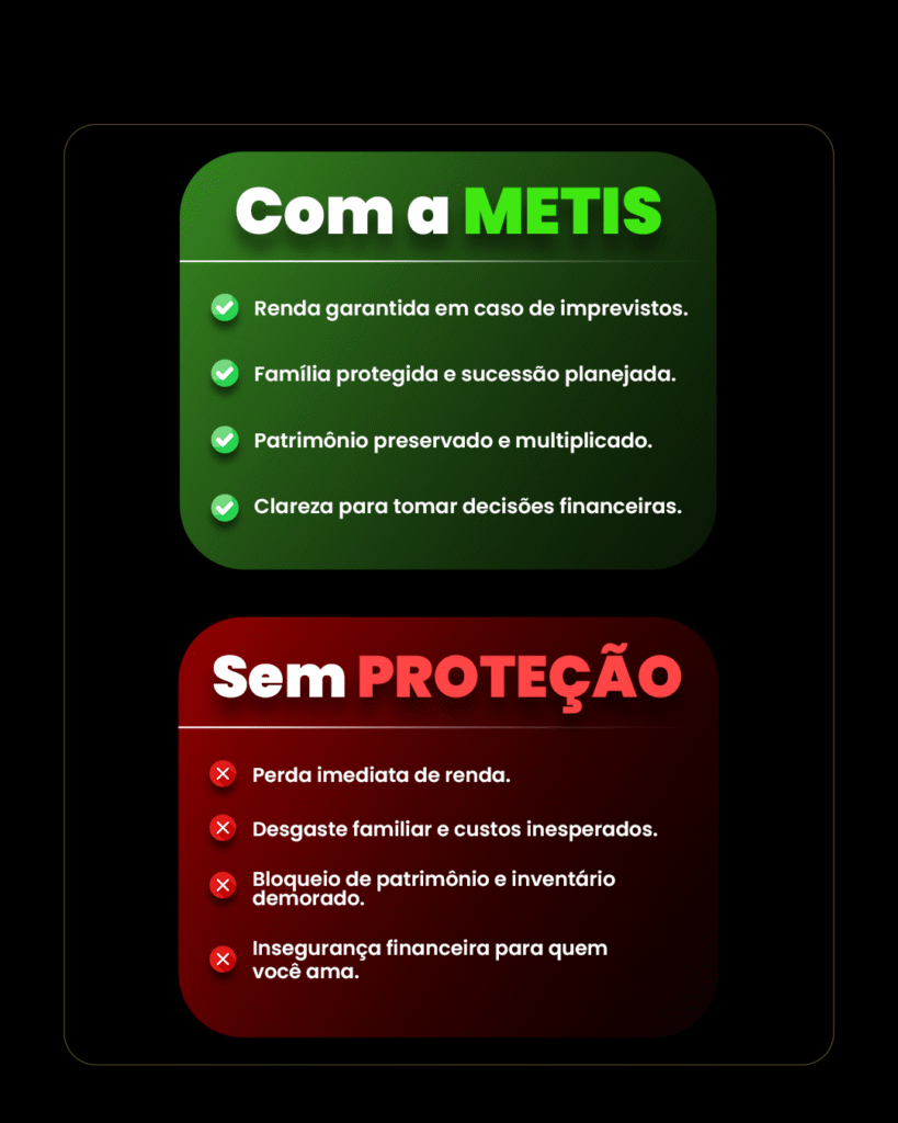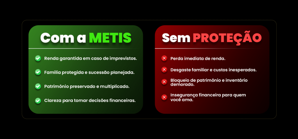 A METIS ajuda você a organizar, proteger e manter seu patrimônio sólido, garantindo segurança e tranquilidade para sua família hoje e no futuro.
