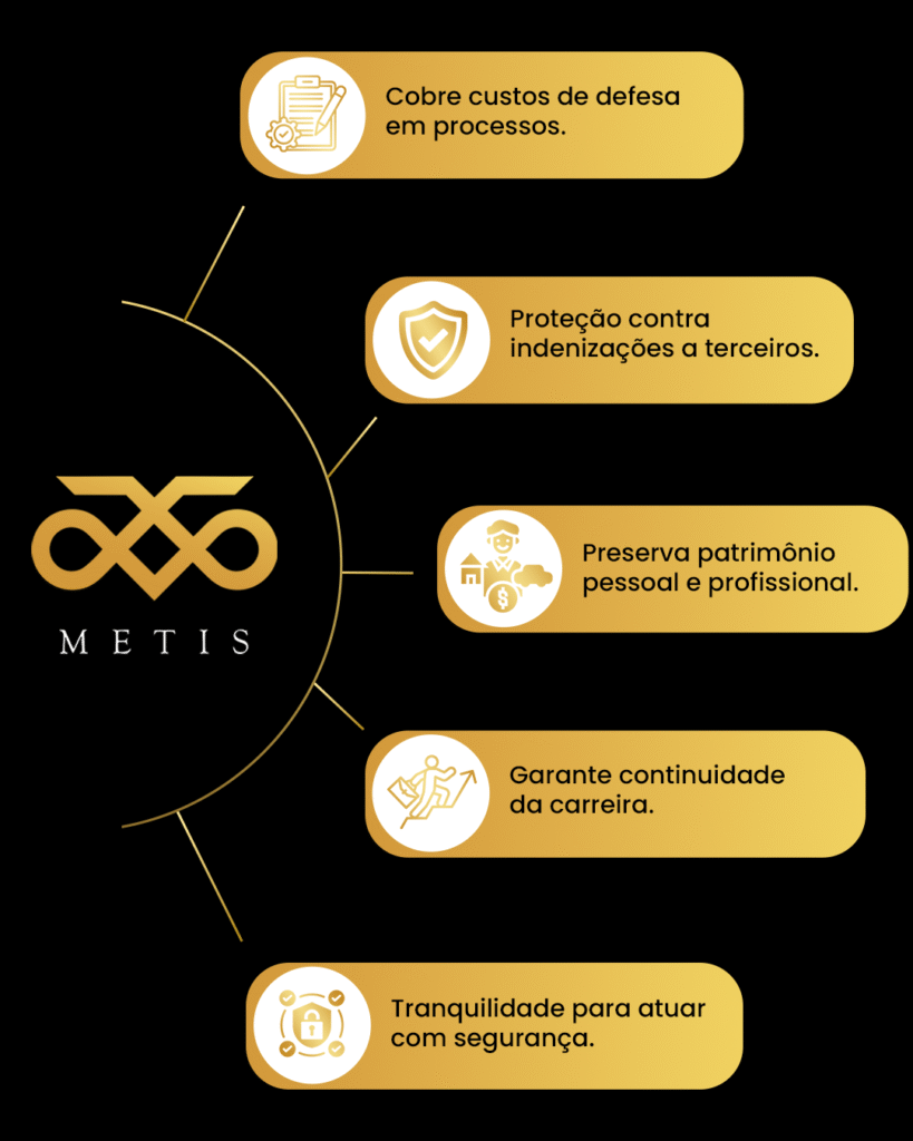 O Seguro de Responsabilidade Civil Profissional oferece proteção financeira e tranquilidade, cobrindo eventuais danos causados a terceiros no exercício da profissão. Assim, você protege seu patrimônio e sua reputação, garantindo que imprevistos não comprometam anos de dedicação à carreira.