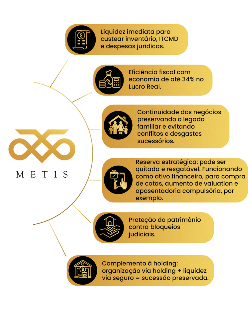 Mais do que planejamento, é inteligência financeira e sucessória. O seguro sucessório garante liquidez imediata, proteção patrimonial e eficiência tributária, evitando desgastes com SÓCIOS, familiares e custos inesperados.